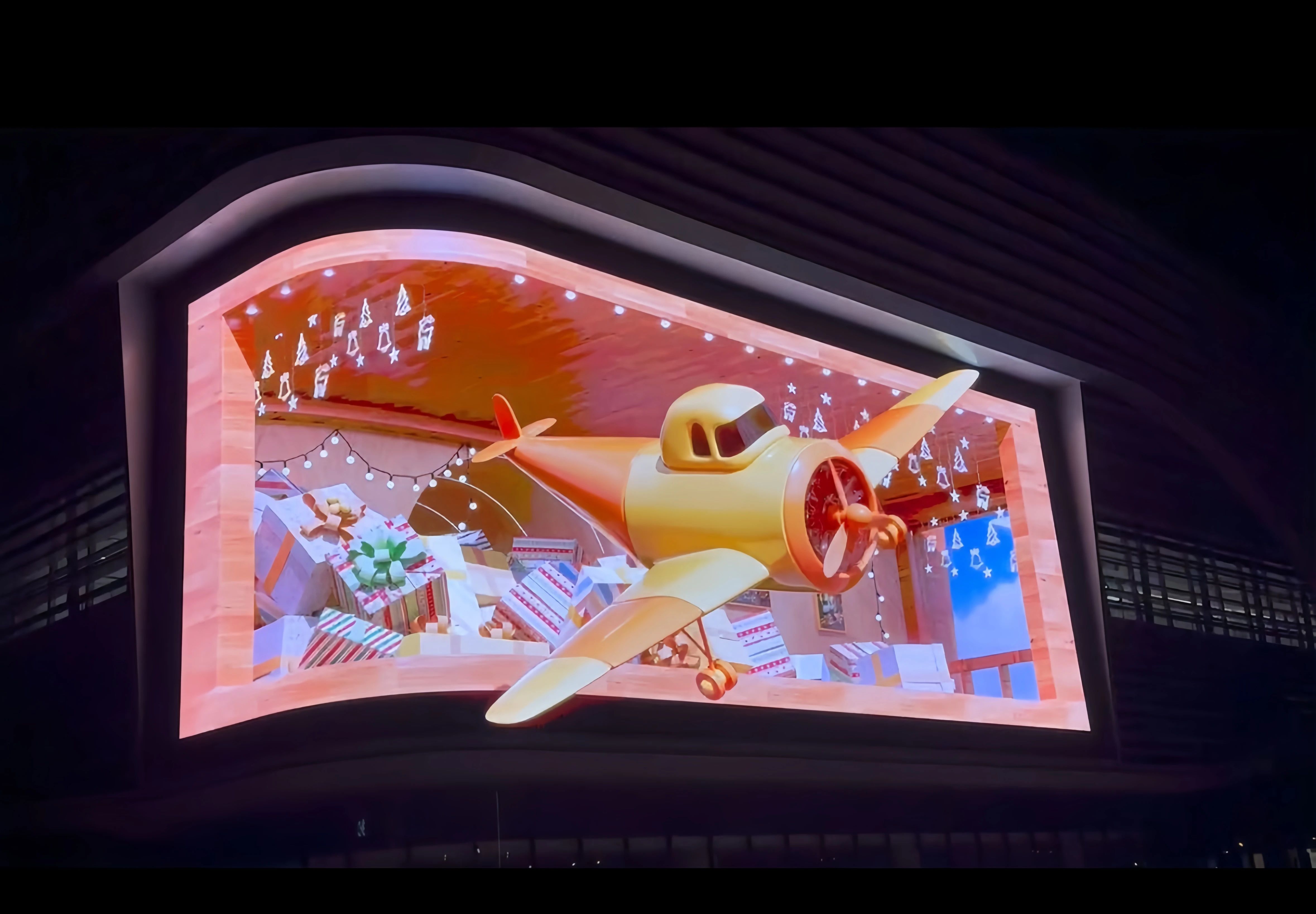 区别于传统拐角屏,利亚德裸眼3D大屏突破空间限制,多角度观看无畸变,适配复杂城市空间布局,让建筑立面成为沉浸式数字画布;分辨率8K以上,能确保画面细节纤毫毕现,极致细腻,即使高速运动画面也流畅无拖影,广泛应用于城市商圈、大型展会、智慧园区等。