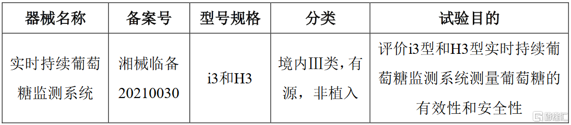 公司产品实时持续葡萄糖监测系统的临床试验该备案的完成标志着公司该项医疗器械的注册工作取得了阶段性进展,公司将按计划推动临床试验及后续注册工作。
