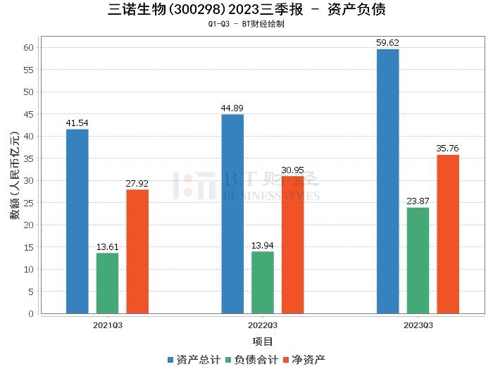 从资产负债方面看,三诺生物2023年三季报显示,公司的总资产为59.62亿元,相比上年度末的61.93亿元有所下降。负债合计为23.87亿元,较上年度末的28.5亿元有所减少。公司的净资产为35.76亿元,较上年度末的33.43亿元有所增加。资产负债率为40.03%,较上年度末的46.02%有所下降。这些变动主要是由于公司新增了一笔长期借款,增加了负债的规模。
