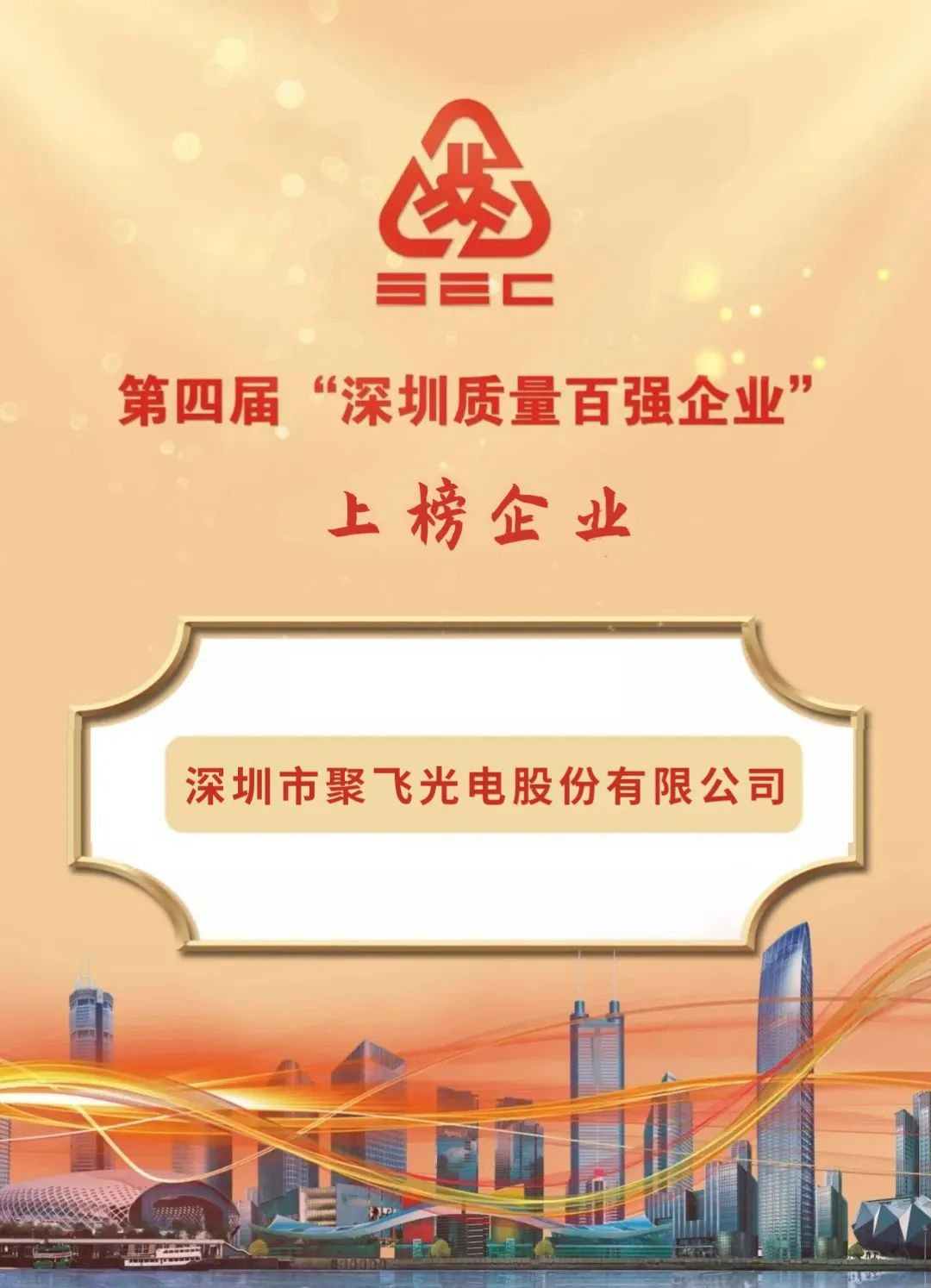 近期,经过深圳市企业联合会严格的评审程序,第四届”深圳质量百强企业”获奖名单正式公布。聚飞光电凭借品质理念、品控体系、产品质量、一体化质量管理标准流程等,再次蝉联“深圳质量百强企业”。