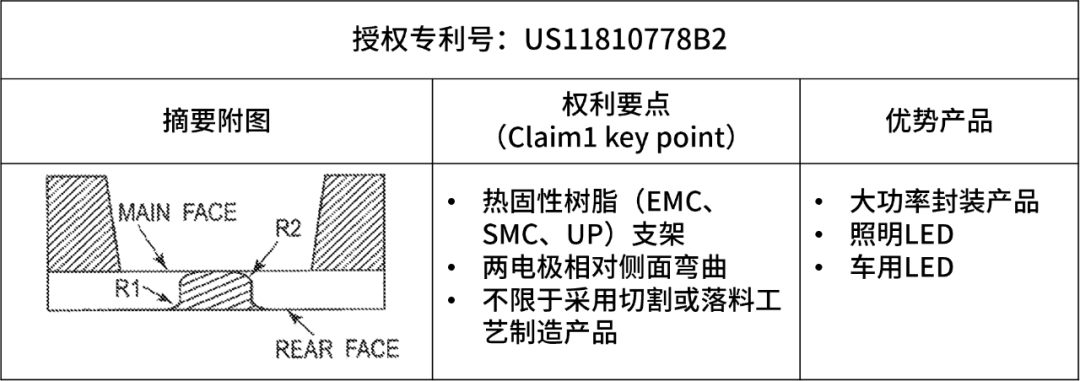 该专利是聚飞光电继2020年12月受让昭和电工的热固性树脂(EMC、SMC、UP)封装核心基础专利,在全球进行热固性树脂(EMC、SMC、UP)封装专利技术布局后,通过延续申请进行深度布局的系列案之一。通过获得该美国专利授权,进一步巩固了聚飞光电在全球进行热固性树脂(EMC、SMC、UP)封装技术布局的深度。该专利技术可覆盖到聚飞光电目前在研的产品和已经投入市场的成熟产品,特别是在大功率封装产品、照明产品和车用产品上具有广泛的应用前景和突出的技术优势。