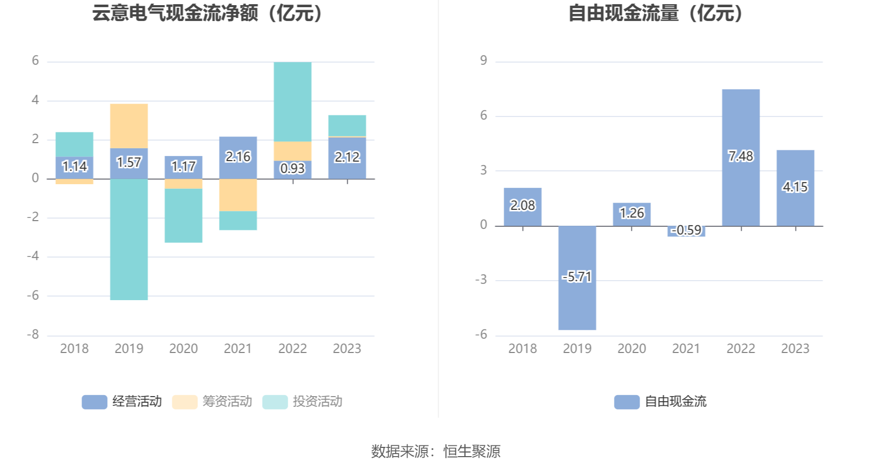 进一步统计发现,2023年公司自由现金流为4.15亿元,相比上年同期下降44.47%。