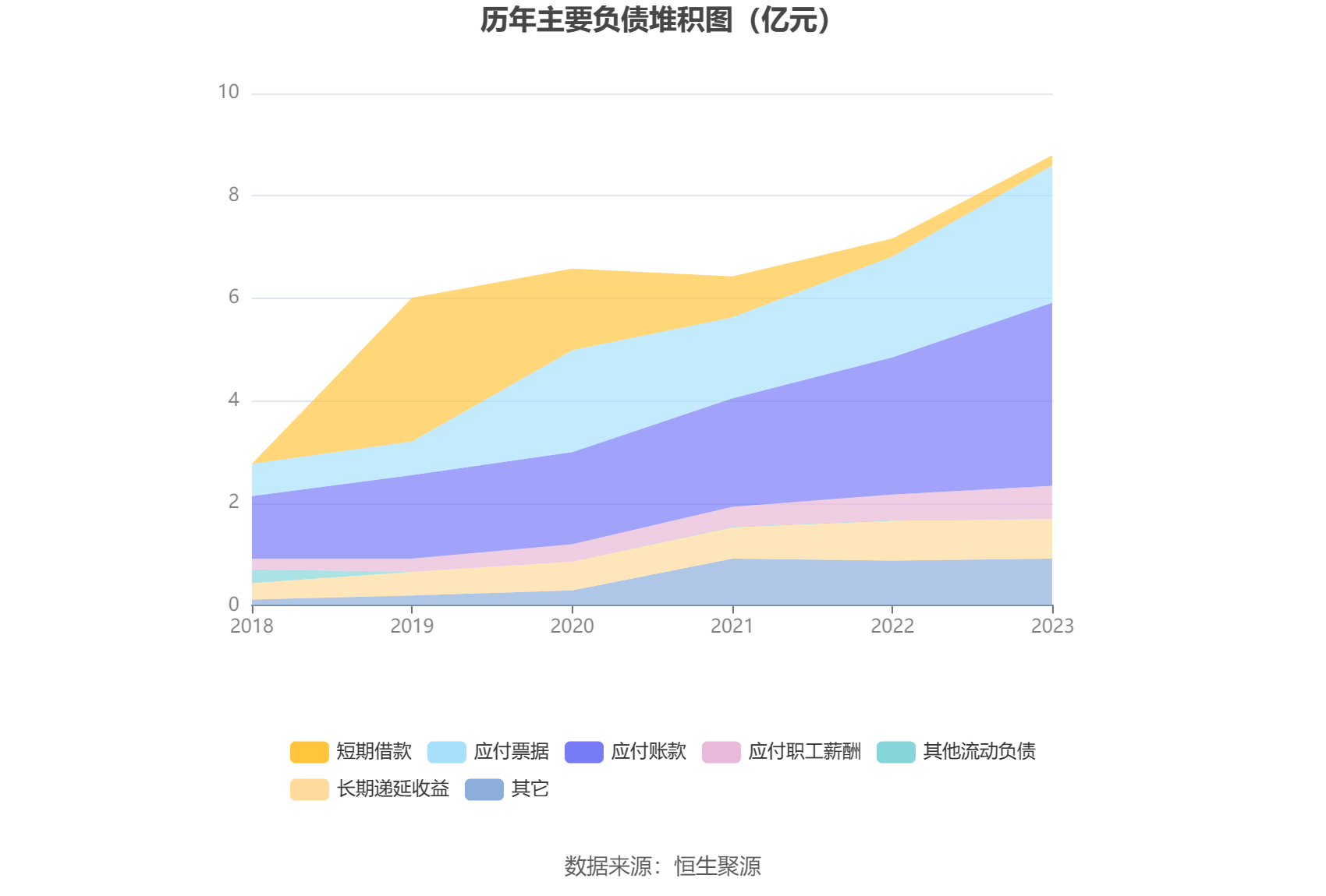 负债重大变化方面,截至2023年年末,公司应付账款较上年末增加33.69%,占公司总资产比重上升1.59个百分点;应付票据较上年末增加36.15%,占公司总资产比重上升1.30个百分点;应付职工薪酬较上年末增加31.83%,占公司总资产比重上升0.27个百分点;短期借款较上年末减少42.87%,占公司总资产比重下降0.52个百分点。