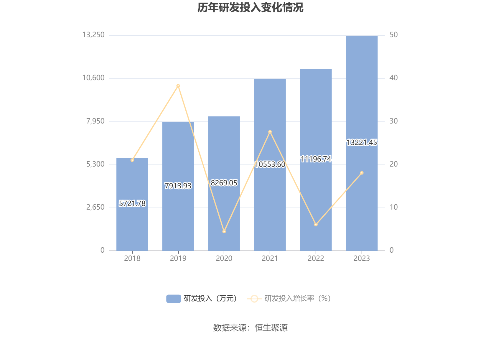 2023年全年,公司研发投入金额为1.32亿元,同比增长18.08%;研发投入占营业收入比例为7.91%,相比上年同期下降1.62个百分点。此外,公司全年研发投入资本化率为0。