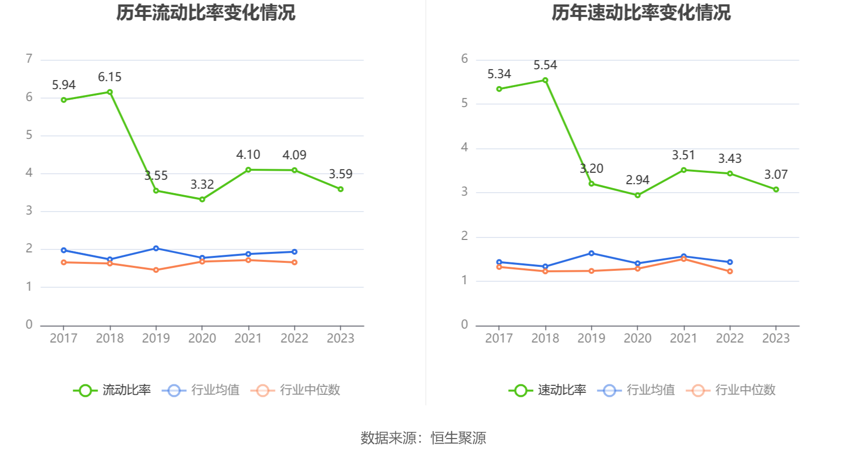 2023年,公司流动比率为3.59,速动比率为3.07。