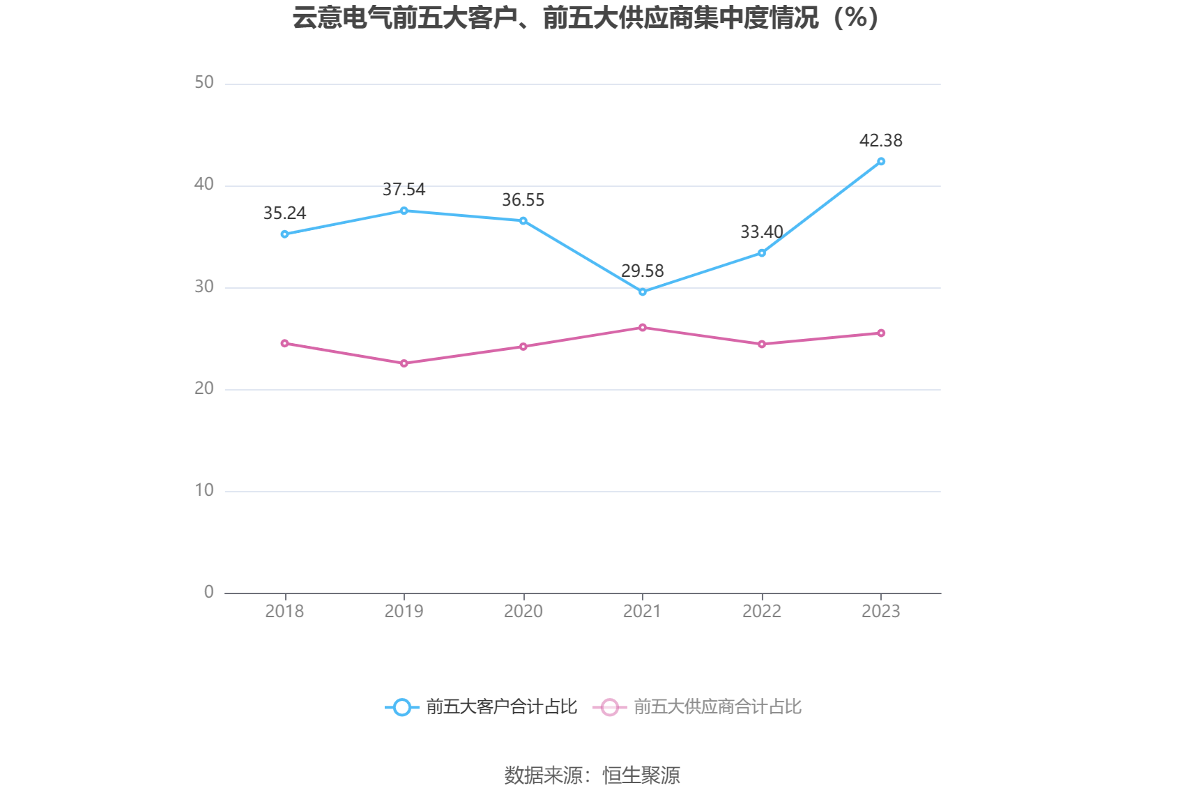 报告期内,公司前五大客户合计销售金额7.08亿元,占总销售金额比例为42.38%,公司前五名供应商合计采购金额2.53亿元,占年度采购总额比例为25.54%。