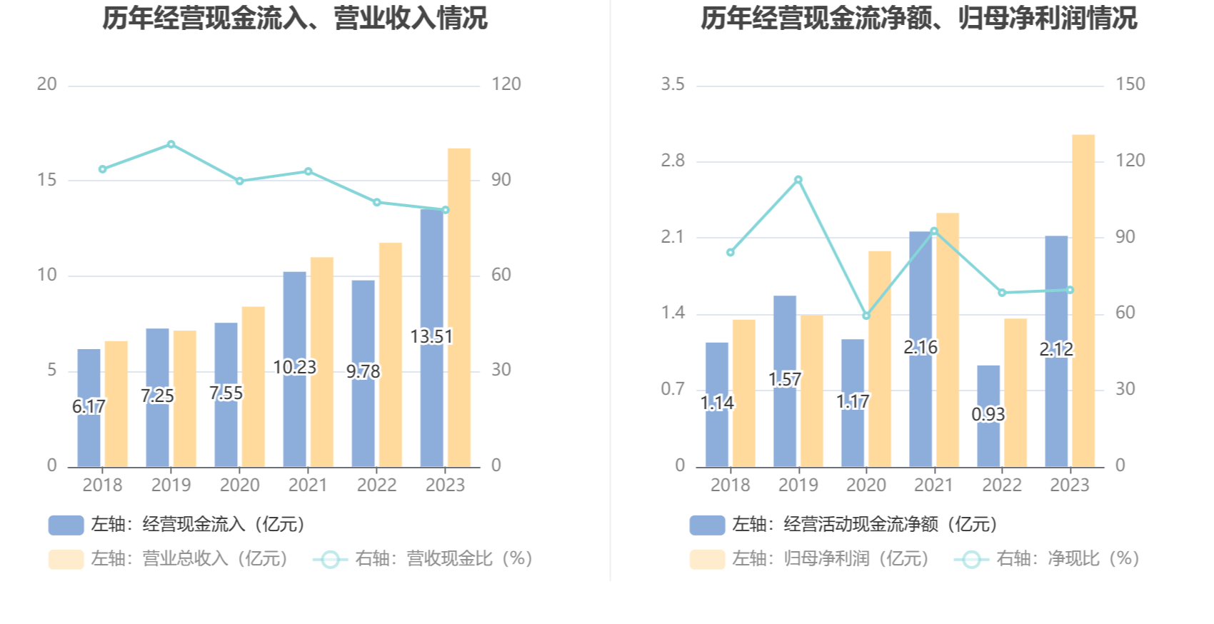 2023年,公司营业收入现金比为80.86%,净现比为69.58%。