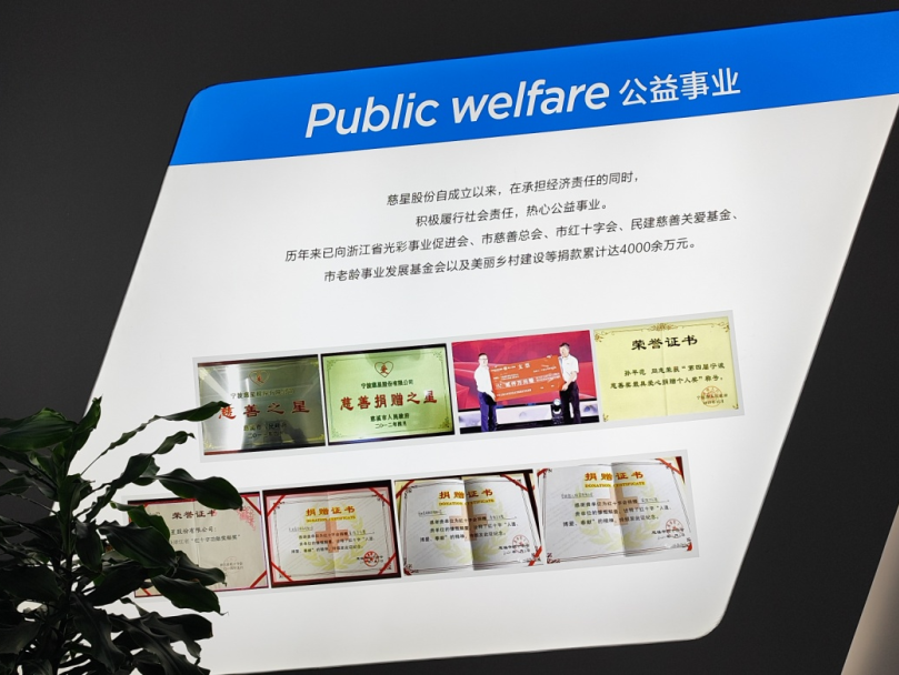 公司凝炼完善了企业经营理念、使命与愿景,编制公司哲学手册;展开“六项精进”、“弟子规”等家文化的全员学习和推广。公司“家文化”贯穿企业发展始终又潜行于企业各个细节和制度中。大到“汶川地震”、“五水共治”、“捐资2000万元支持宁波大学科技学院建设”,小到“乡村建设”,慈爱善心的文化内核不断驱动慈星人在“小家”与“大家”动态融合。公司进一步建立和完善了劳动者与所有者的利益共享机制,改善公司治理水平,提高职工的凝聚力和公司竞争力,促进公司长期、持续、健康发展,在“裕人1号”、“裕人2号”员工持股计划的基础上, 2023年公司又实行了二期“限制性股票激励”计划;公司还进一步改善职工福利和以厂为家的归属感,积极开展“员工庆生”、“邀请员工咱爸咱妈来咱家”等活动;针对优秀员工,企业每年进行客观公正的评比,并颁发证书,设立光荣榜,重金奖励先进,让榜样的作用在员工群体中展现。在浓郁的家文化氛围熏陶下,清廉文化顺理成章地的融入到了企业文化,引导全体员工增强廉洁自律意识,将廉洁从业内化于心、外化于行,营造以清为美、以廉为荣的清廉企业生态。公司清白、清朗、清廉的企业经营制度和文化生态链,给企业带来了实实在在的好处。企业被工信部认定为国家级制造业单项冠军示范企业、国家智能制造试点示范企业、国家级绿色工厂,主导产品荣获国家科技进步奖。2023年企业实现营业收入203202.89万元,纳税8421.58万元。