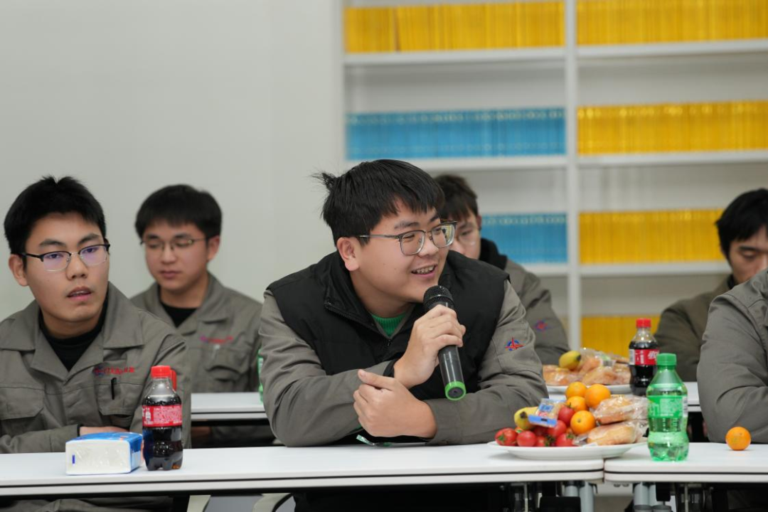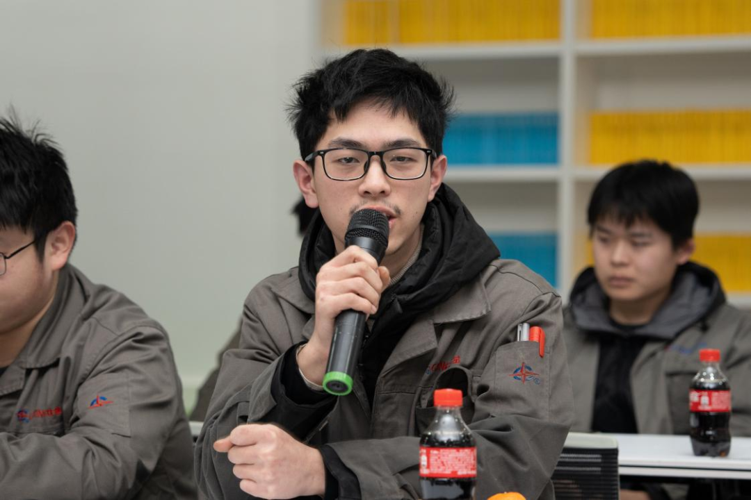 毕业于校企合作的销售部的新星边经纬,分享了自己初入公司时面对挑战的经历,在同事们的帮助下逐步克服困难的过程;研发部软件组代申连也介绍了自己在工作中遇到问题先自主探索再请教师傅的工作实践方法;还有同学分享了在领导和同事的帮助下,从对机器操作的陌生到能够独立操作的成长。