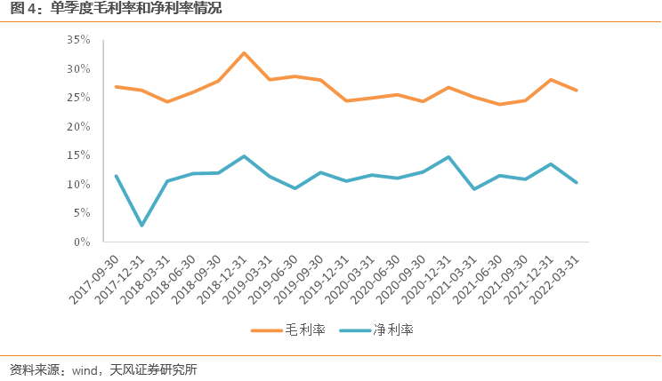 2021年公司整体光模块毛利率26.26%,同比提升0.63个百分点,单季度来看,21Q4毛利率28.11%创近年来最佳水平,22Q1毛利率26.28%同比也提升了1.17个百分点。公司领先的规模优势、工艺良率优势等有效保证了公司制造和采购成本优势,叠加新产品上量带来的产品结构不断优化,推动公司整体盈利能力不断优化,市场竞争力不断强化。