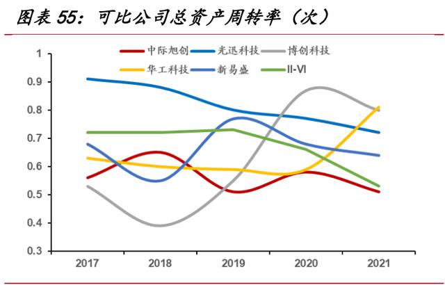 公司的营运能力表现一般。其中,总资产周转率相较于可比公司偏低,基本位于 0.5 次左右,同时公司的存货周转率也低于同行业其他公司。我们认为主要原因是公司的产能优势需要良好的供应链管理作为基础。在疫情影响全球芯片供应、中美关系紧张等风险因素影响下,公司会提前锁定上游产能,建立足够的库存以满足下游大客户的批量交付需求。我们认为公司高端光模块业务的上游光电芯片短期内还是需要境外运营商支持,运营效率将保持在当前水平。