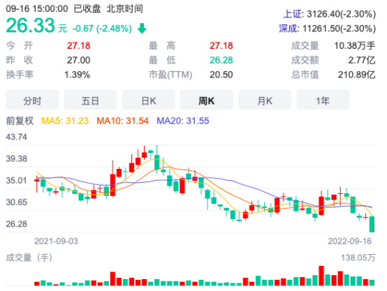 据了解,今年以来中际旭创股价走出了一轮显著下跌,截止9月18日,股价为26.33元/股,总市值210.89亿元。截止9月27日早上开盘前,中际旭创股价报26.72元/股,总市值214亿元。