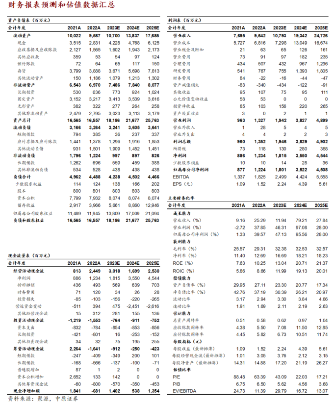 公司800G产能持续提升,核心原材料供给得到有效保障,800G/400G等硅光和相干新产品已得到重点客户的验证和认可,市场导入进程加快。2023Q3公司800G/400G光模块同比、环比的出货量、收入、毛利率均有所上升,公司业绩有望在Q4和明年继续保持增长。AI算力的发展加快了光模块技术迭代,并且缩短了光模块周期。2025年AI客户对1.6T产品需求有望释放。我们预计公司2023-2025年归母净利润为18.01亿元、35.22亿元、45.08亿元,对应PE为43X、22X、17X,维持“买入”评级。