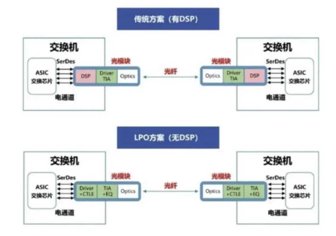 ①、LPO技术核心就是去掉了DSP芯片。