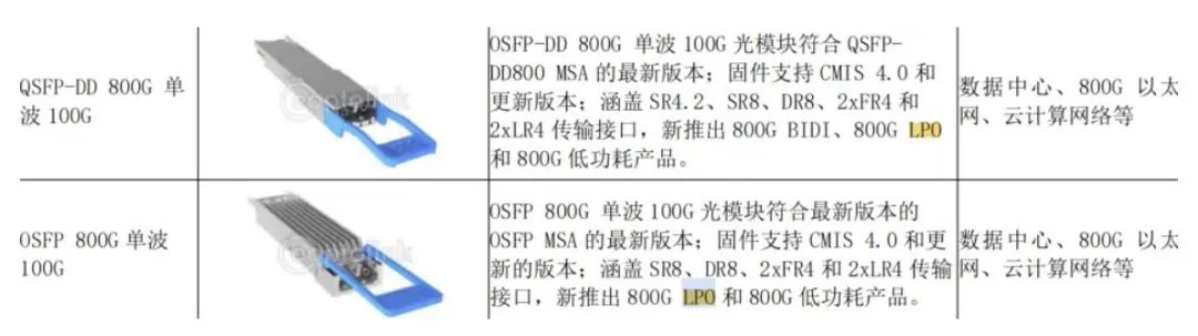 800G产品、目前销量占营收大概35%,是主力营收产品,也是基本盘。主要采用EML方案。主流封装:QSFP-DD、OSFP封装。
