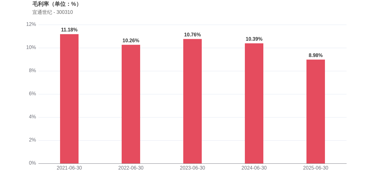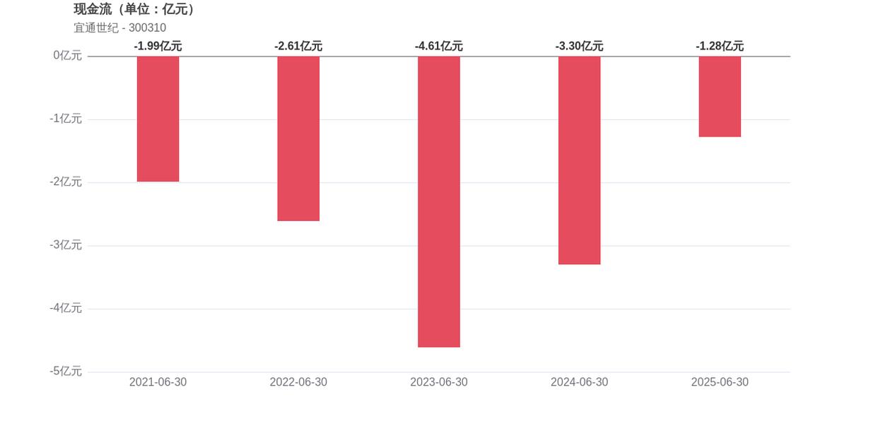 在经营稳健性方面,宜通世纪面临存货周转效率下降的压力,存货周转天数为100.83天,较2024年上半年增长了13.61%,表明公司运营效率有所下滑。经营活动产生的现金流净额为-1.28亿元,虽较2024年同期的-3.3亿元有所改善,但仍为负值,显示出公司现金流管理仍需加强。此外,2025年上半年的资产负债率为39.72%,同比增长了2.42个百分点,这意味着公司财务杠杆有所提升。