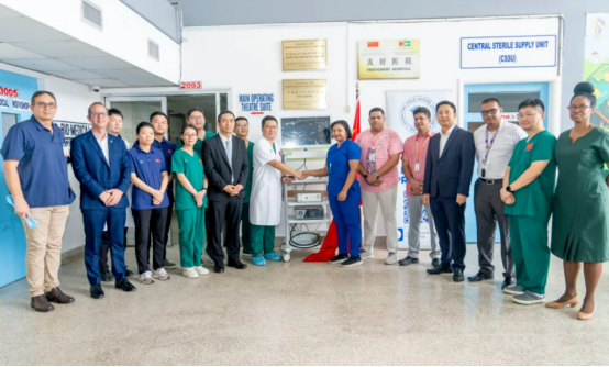2025年2月21日,中国援圭亚那医疗队向其首都乔治敦公立医院捐赠了一套中国制造的4K荧光腹腔镜手术设备。这套先进的医疗设备由戴维医疗旗下全资子公司维尔凯迪提供。此次捐赠不仅是戴维医疗践行社会责任的体现,更是中国医疗技术走向世界、助力全球健康事业的生动实践。
