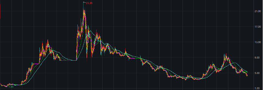 2020年8月5日,掌趣科技股价曾触达阶段性高点10.08元/股,而截至2021年5月25日收盘,该股报收于4.38元/股,不到9个月时间股价已下降56.5%,当前公司总市值为120.78亿元。