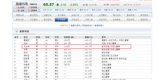 说起晶盛机电,用“博士天团”来形容,一点儿不为过。目前晶盛机电高管博士占一半,仅有初中学历的毛全林似乎有些格格不入。但事实上,毛全林已担任晶盛机电副总经理十来年了。