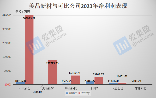 在出货量及毛利率双向提升背景下,美晶新材近年归母净利润持续增长,继2021年扭亏为盈后,2023年再同比增长491.1%至17.78亿元,盈利规模仅次于石英股份,在可比公司中位居第二。