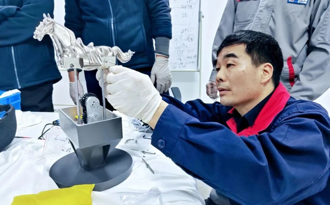比赛过程中,参赛选手们以技术精湛、追求卓越的“晶匠精神”打磨作品,用聚焦专注、千锤百炼的“榔头精神”攻克难关,充分发挥各自专业优势,紧密配合。从图纸的精益求精,到通过五轴联动龙门加工、卧式加工、卧式镗铣加工等各类加工机床的精雕细刻、三坐标测量仪的严格把关,再到最后的巧妙组装与动态测试,每个细节都展现着晶盛技术人员严谨与细致。