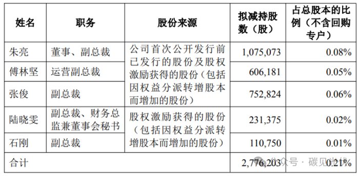 《碳见光伏》注意到,在业绩持续走弱的敏感阶段, 晶盛机电 核心管理层集体抛出减持计划,进一步加剧市场担忧。10月16日披露的公告显示, 晶盛机电 董事及高级管理人员朱亮,高级管理人员傅林坚、张俊、陆晓雯、石刚计划自今年11月8日至2026年2月7日期间合计减持277.62万股股份,占公司总股本的0.21%。减持原因均为个人资金需求。