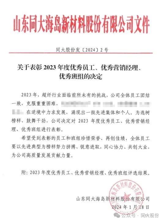 2023年,超纤行业面临前所未有的挑战,公司全体员工团结一致,克服重重困难,在逆境中力求发展,涌现出一批先进集体和个人。为选树榜样、鼓舞干劲,公司对2023年度优秀员工、优秀营销经理、优秀班组进行表彰。