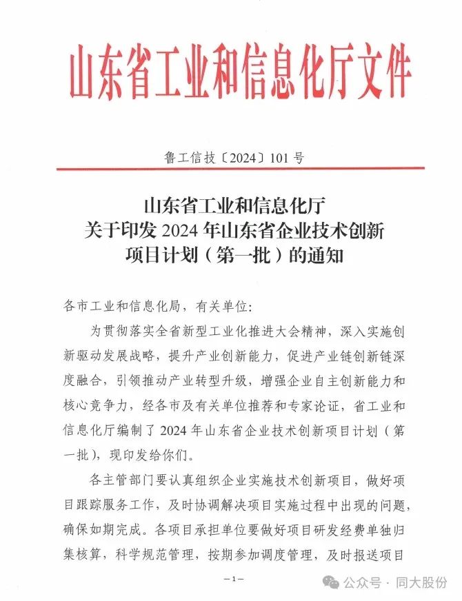 近日,同大股份技术项目《功能性儿童安全防护鞋用生态超纤革》《无氟防虹吸户外运动鞋革的开发》《轻量化超软球革用超纤革的开发于应用》成功入选2024年山东省第一批技术创新项目计划(鲁工信技【2024】101号)。