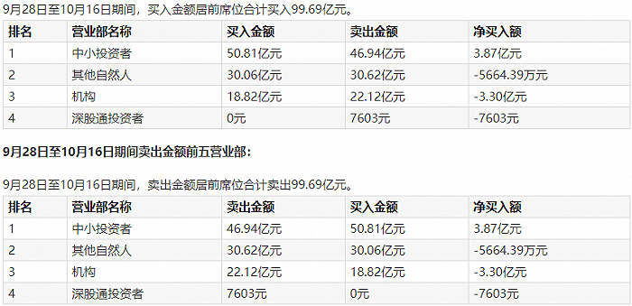 从数次盘后龙虎榜来看,机构专用席位上榜频次极高。数据显示,9月28日至10月16日期间,硕贝德上榜营业部席位合计成交199.37亿元,其中自然人交易占比近80%,机构交易占比超20%。值得注意的是,自然人股东净买入3.30亿元,而机构股东净买入-3.30亿元。