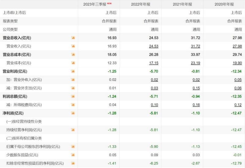 近几年,在实控人遭遇困境的同时,旋极信息也陷入经营业绩欠佳之中。2020年至2022年各年度,旋极信息的营业收入分别为27.98亿元、31.72亿元和24.53亿元,2023年前三季度营业收入为16.93亿元,呈波动下滑的趋势;同期净利润连续亏损,分别为-12.47亿元、-1.10亿元、-5.81亿元和-1.28亿元,净利润亏损金额在营业收入中的占比相当大。