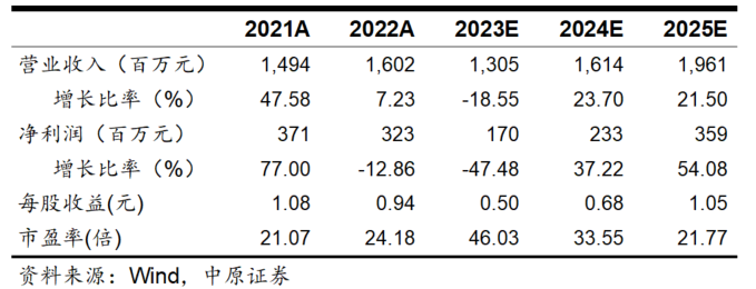 盈利预测与投资建议。考虑下游需求复苏缓慢,我们下调公司盈利预测,我们预计公司23-25年归母净利润为1.70/2.33/3.59亿元(原值为3.70/4.72/5.73亿元),对应的EPS为0.50/0.68/1.05元,对应PE为46.03/33.55/21.77倍。考虑公司在国内家电MCU领域的优势地位,国际家电MCU市场拓展顺利,车用MCU打开未来的成长空间,AMOLED显示驱动芯片重点发力智能手机品牌客户,有望为公司带来新的营收增长动力,维持“买入”评级。