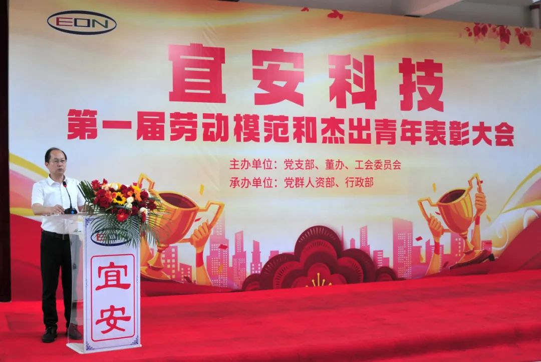 总经理李卫荣宣读了获得第一届劳动模范和杰出青年名单。他们中既有扎根车间、默默奉献的工人师傅,又有埋头钻研、开拓创新的工程研发人员,和严谨认真、精益求精的管理人员,还有敢闯敢拼、能征善战的销售人员。总经理李卫荣代表公司向所有受表彰的劳动模范和杰出青年表示热烈的祝贺!