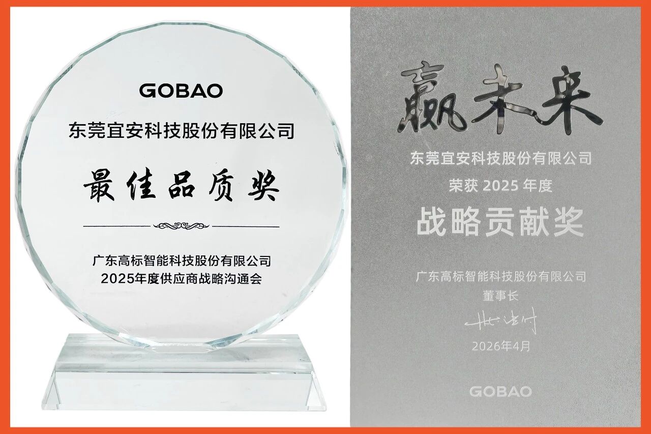 近日,宜安科技与高标智能的深度合作再传佳音。宜安科技凭借技术优势、卓越品质、完善的一站式解决方案及高效协同能力,荣获高标智能颁发“最佳品质奖”与“战略贡献奖”双项殊荣。这不仅是高标智能对宜安科技产品与服务的高度认可,更是双方携手深耕电动短交通领域、推动产业升级的坚实见证,同时也是宜安科技产品优势在电动短交通赛道的硬核印证。