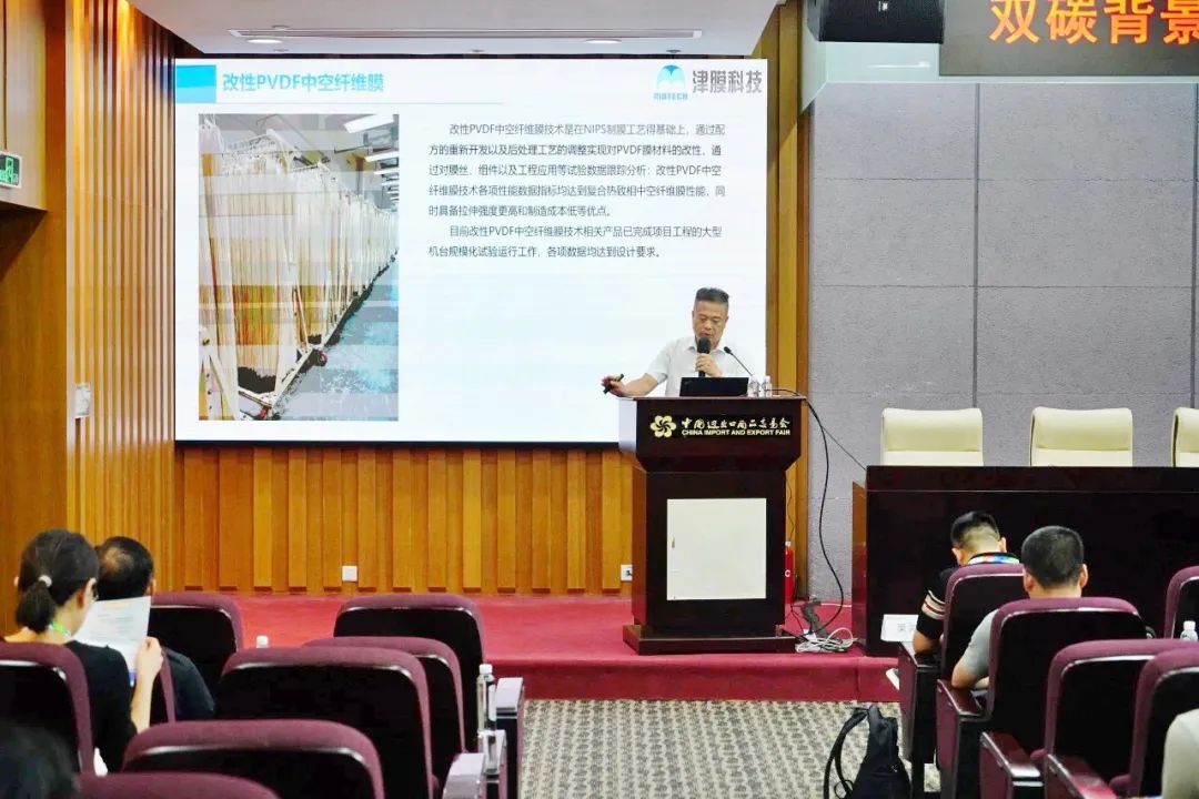 展会同期“双碳背景下膜法水处理技术创新与应用论坛”,公司研发中心工艺开发部经理吴瑞军(高级工程师)做了题为“津膜科技创新产品及应用技术”的报告,分享了关于津膜科技的三个“新”: