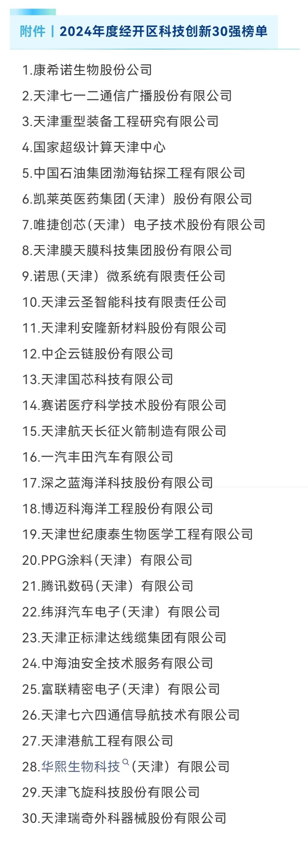 近日,天津经济技术开发区(以下简称“经开区”)正式公布2024年度科技创新30强企业名单,天津膜天膜科技集团股份有限公司等30家企业凭借突出的创新实力和产业贡献脱颖而出,成为引领经开区新质生产力发展的核心力量之一。