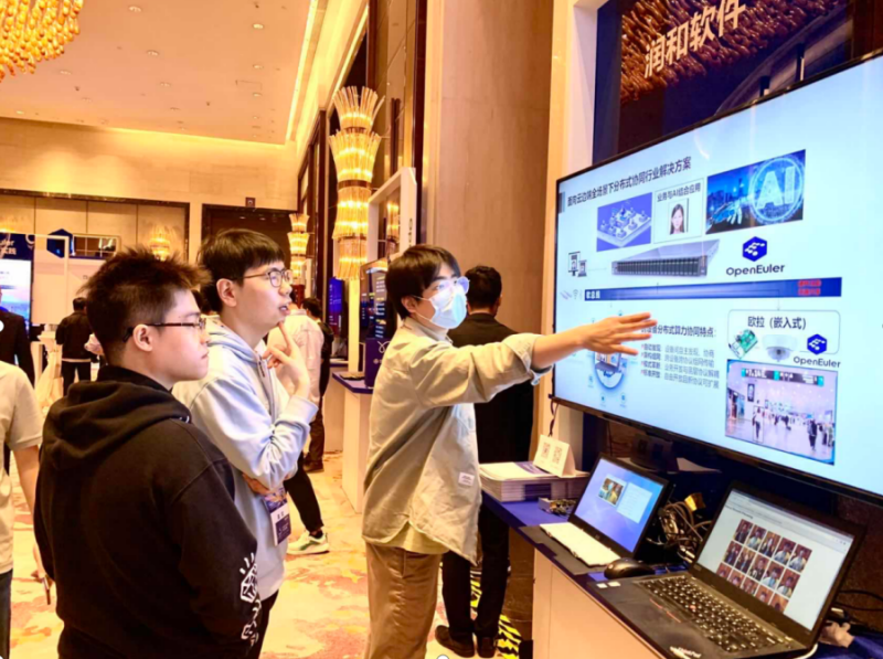在本次峰会上,润和软件在展台展出了面向云边端全场景下分布式协同行业解决方案。该方案DEMO同时运行openEuler服务器、openEuler嵌入式设备以及OpenHarmony设备,充分展现出openEuler与OpenHarmony基于软总线的分布式算力协同联动效果。这是润和软件厚积薄发、多年深耕国产操作系统技术研发攻关的成果呈现。