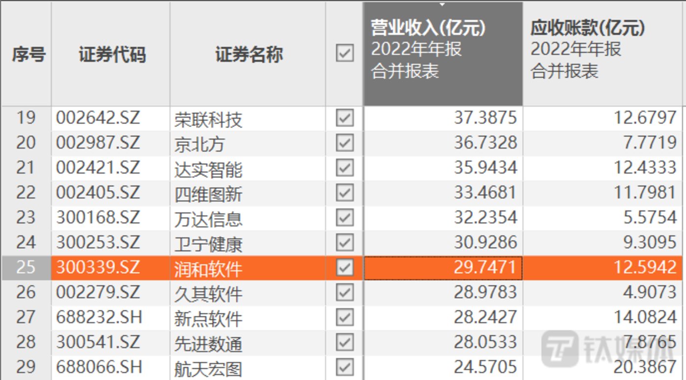 财报显示,润和软件应收账款余额14.65亿元,坏账准备金额2.06亿元,应收账款净值12.59亿元,占合并资产总额的26.21%。