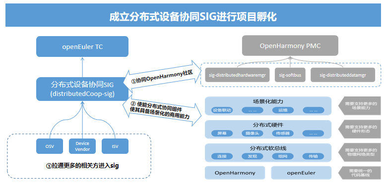 分布式中间件SIG以欧拉鸿蒙协同为切入点,构建openEuler原生全场景支持多设备协同能力,解决端设备形态不一、稳定快速组网难、传输损耗大及接口不统一等一系列边端设备互联难点问题,为设备之间的互联互通提供统一的分布式通信能力开放标准,达成自动发现、即连即用、高带宽、低时延、稳定可靠的目标。