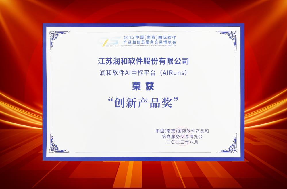 8月23日,中国(南京)国际软件产品和信息服务交易博览会圆满闭幕。闭幕式上,江苏润和软件股份有限润和软件(以下简称“润和软件”)AI中枢平台AIRuns获颁“创新产品奖”。
