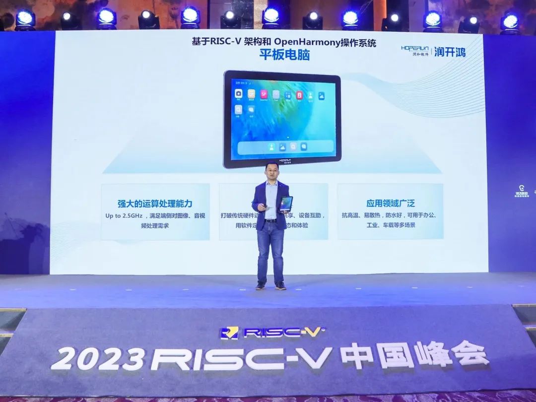 2023 RISC-V中国峰会于8月23日至25日在北京召开,峰会以“RISC-V生态共建”为主题,结合当下全球新形势,把握全球新时机,呈现RISC-V全球新观点、新趋势。本次大会邀请了RISC-V国际基金会、业界专家、企业代表及社区伙伴等共同探讨RISC-V发展趋势与机遇,吸引超过百余家业界企业、高校院所及开源技术社区等机构参会。作为OpenHarmony RISC-V SIG核心成员单位,江苏润和软件股份有限公司控股子公司江苏润开鸿数字科技有限公司(以下简称“润开鸿”)受邀发表主题演讲并于大会期间发布多款基于RISC-V架构的OpenHarmony终端新品——平板电脑、边缘计算网关及云桌面终端,在不断推进软硬件底层能力释放、积极响应代码开源贡献、共建生态的同时,加速成果转化进程,助推产业应用及落地。