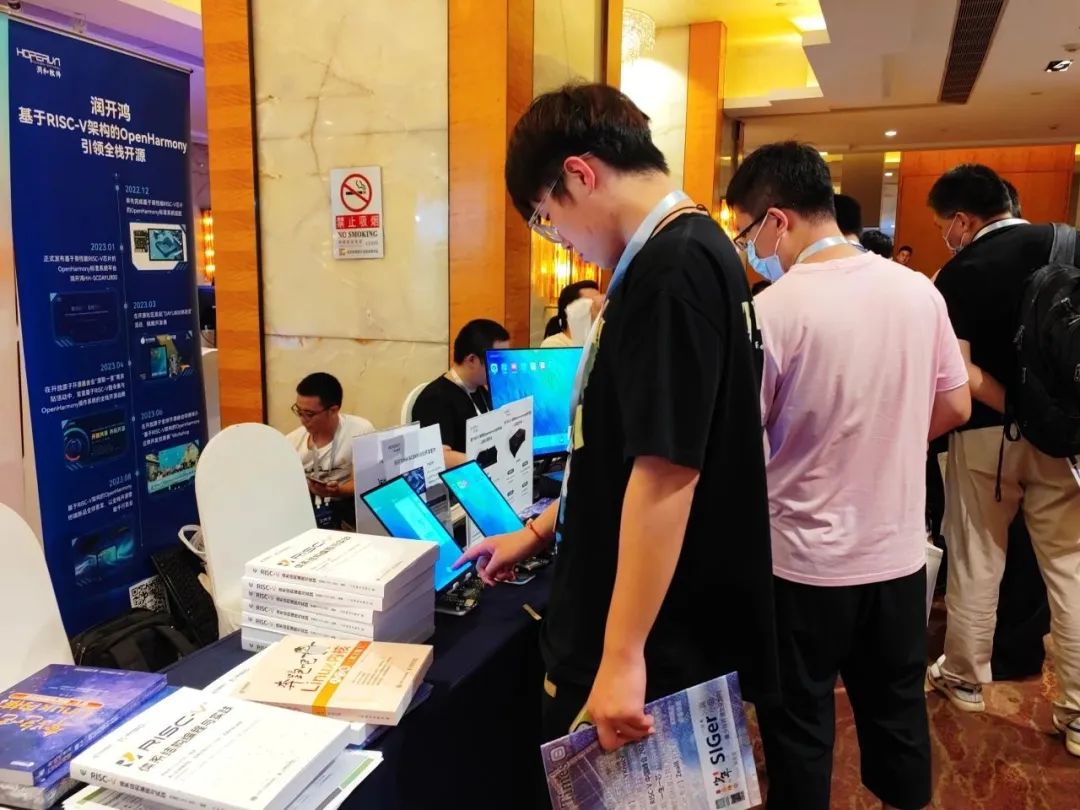 在本次峰会的技术社区交流区-润开鸿展位以及平头哥互动专区中,润开鸿基于高性能RISC-V开源架构处理器的OpenHarmony标准系统开发平台HH-SCDAYU800及三款新发布的终端新品实物均有亮相,备受与会嘉宾关注,众多现场观众争相体验新品功能。