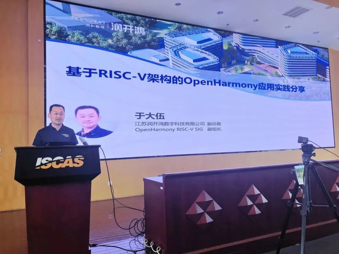 此外,在本次峰会同期活动、由中国科学院软件研究所主办的“TARSIER开放日暨RISC-V开源操作系统进展交流”中,于大伍受邀发表了题为《基于RISC-V架构的OpenHarmony应用实践分享》主题演讲,与嘉宾们分享了润开鸿推进基于RISC-V与OpenHarmony全栈开源生态的落地实践及产业化应用成果。