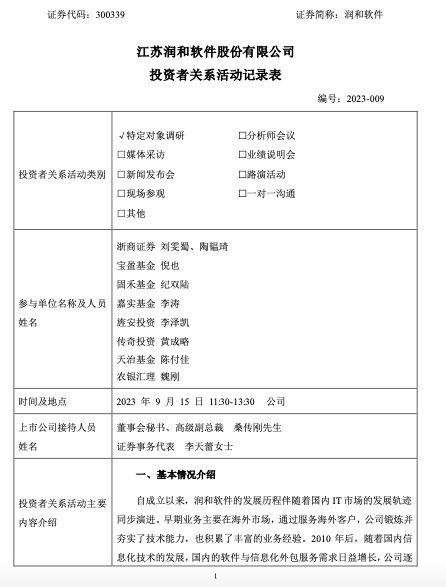 江苏润和软件股份有限公司(以下简称“润和软件”或“公司”)9月15日晚间发布公告称,公司于9月15日接受了多家机构投资者的特定对象调研。在调研中,润和软件透露,开源鸿蒙主要是从物联网到边缘计算到应用去解决各行各业的数智化升级,公司与核心合作伙伴保持深度合作,未来在行业落地方面开源鸿蒙有着较大的市场空间和机会。