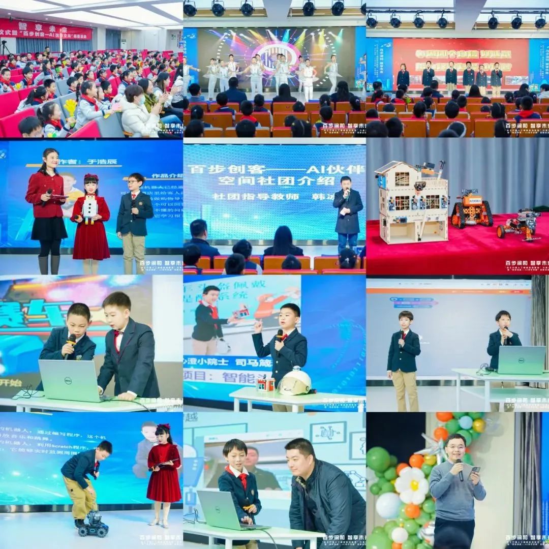 仪式期间还安排了丰富多彩的活动,有来自拉小同学们的舞蹈《智享未来》、情境主题《科技创新,强国有我》等精彩表演,还有心澄小院士《智能头盔》作品分享。活动期间还举办了“百步创客——AI伙伴空间社团”获奖作品现场展示和颁奖仪式。
