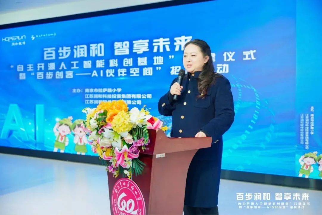 南京市拉萨路小学党总支书记严瑾在共建仪式致辞中表示:作为江苏省科技特色学校、南京市科技创新教育实验学校,拉萨路小学积极响应国家关于“要激发科技创新的青春力量,要让对科学研究有志向、有兴趣、有天赋的学生脱颖而出”的号召,不断推进科技创新拔尖人才的培养计划。拉小科技创造节活动已持续进行了20年,本次组建“百步创客——AI伙伴空间社团”等也是基于同样的初心。润和软件基于自主研发的“开源大师兄”人工智能类课程,自引入学校进行教学实践以来深受孩子们的喜爱。后续,希望依托“自主开源人工智能科创基地”的共建,能与润和软件这样国内顶尖的科技企业更深入合作,共同培养更多具备创新精神和实践能力的优秀人才。在致辞中,严瑾书记强调“人工智能正在深刻地改变着我们的生活、学习和未来。”她呼吁拉小的同学们更加深入地了解人工智能的原理、应用和发展趋势,持续不断激发自身对科技的兴趣和热情。