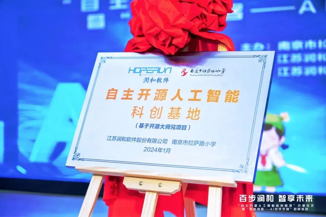 2023 年4月起,润和软件基于“开源大师兄”信息科技信创教学课程开始在拉小开展合作教学,组建了创客社团,助力学校信息课的开展,探索出许多值得推广的经验。为进一步深度推进该项目的实验研究,提升学生创新素养能力,特举行本次“自主开源人工智能科创基地”共建仪式。