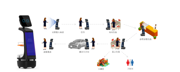 AIRobot是一款专为汽车销售店设计的服务机器人,结合了导购、安全监控和信息服务功能,为汽车销售店提供全面的支持,能够协助店员完成迎接顾客、提供饮品,介绍车型信息、引导参观、定时巡查等作业,提高销售效率和客人体验,创造更具吸引力的购车环境。通过多次能力迭代,AIRobot重点强化了客人动线识别,坐席识别,音声对话,车型知识库问答等AI功能,目前已在大阪丰田门店投入试行,收获客户一致好评。