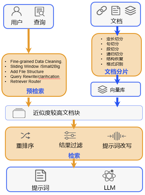 3.通过重排序、结果过滤、与提示词改写等措施提升了LLM处理Prompt时的效率。