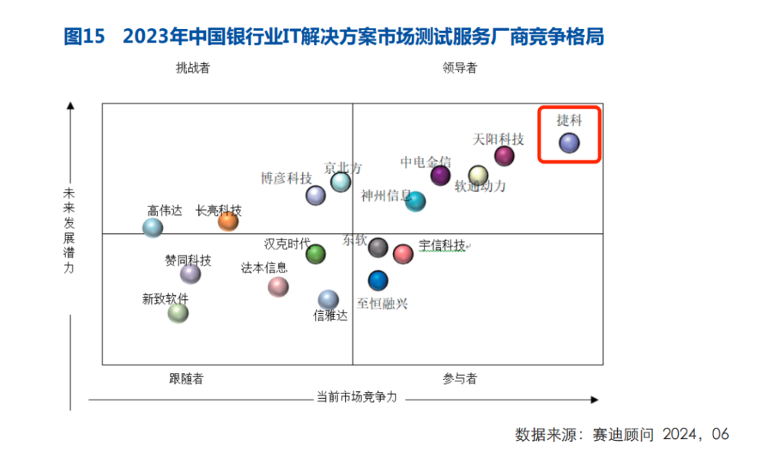 北京捷科智诚科技有限公司(简称“捷科”)作为润和软件集团旗下独立运营的金融品牌,是润和软件金融业务的重要载体。凭借深厚的金融行业经验、集团的科技赋能与生态合作伙伴的强大助力,为银行业提供集需求、开发、测试、运维为一体的全栈服务。面对金融行业技术变革,捷科持续赋能金融机构数字化转型,积极推动国产化软件改造和AI应用,凭借前瞻性的战略眼光与卓越的服务品质,为金融机构输出高质量的产品和服务。测试业务是公司稳定发展的核心支柱之一,捷科以金融测试领域丰富的行业积累和实施经验为基础,通过精准的研判能力和前瞻的战略部署,在AI等新技术的加持下,始终领跑市场,并在中国银行业IT解决方案市场测试服务厂商竞争格局中持续处于领导者首位!