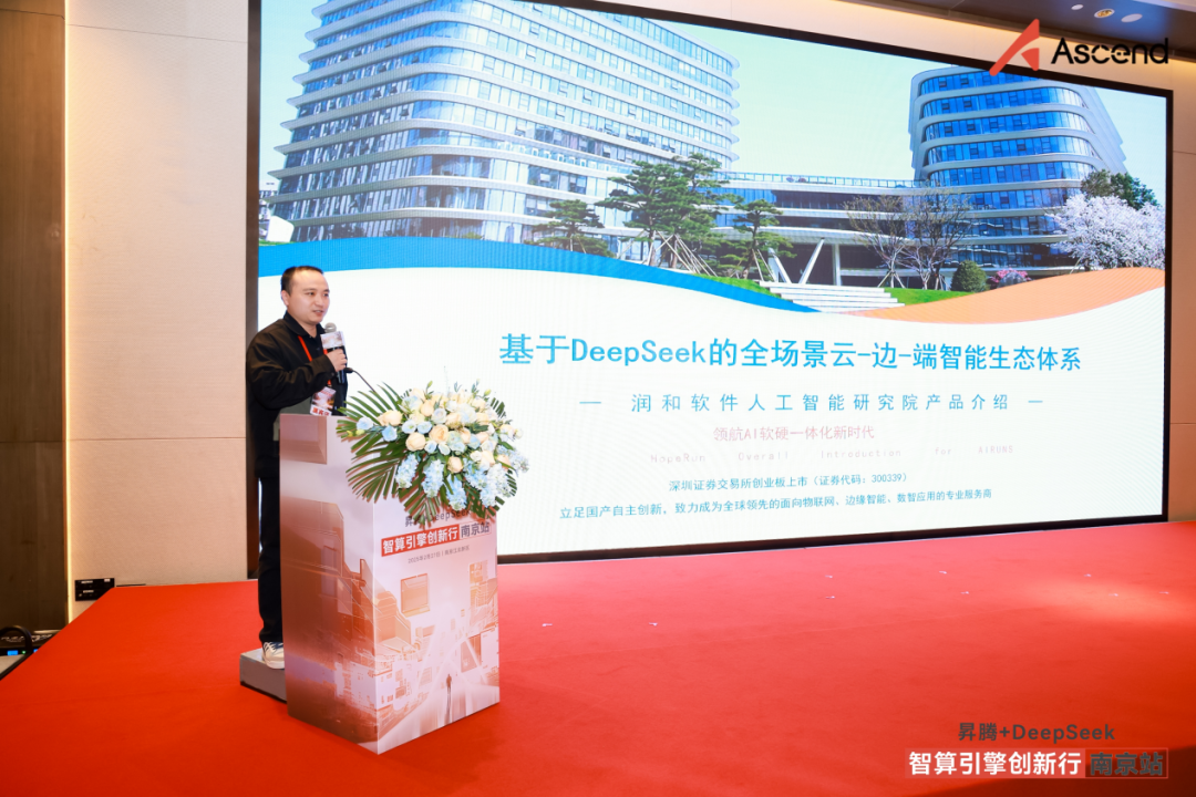 近日,“昇腾+DeepSeek 智算引擎创新行”江苏省首站活动在南京成功举办,本次活动由南京江北新区产业技术研创园指导,江苏省人工智能学会、江苏鲲鹏·昇腾生态创新中心主办。江苏润和软件股份有限公司(以下简称“润和软件”)作为昇腾生态核心伙伴受邀出席,人工智能研究院AI总工朱凯分享了基于“昇腾+ openEuler + OpenHarmony + DeepSeek”的全场景云-边-端智能生态体系的技术实践,并参与圆桌论坛探讨DeepSeek大模型行业落地路径。